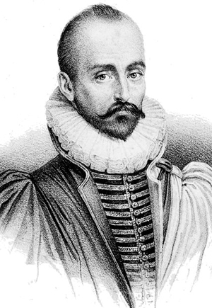 Michel de Montaigne (1533-1592) växte upp på slottet Montaigne i trakten av Bordeaux. Hans familj var av välbeställd överklass, och Michel fick en för den tiden modern uppfostran, han fick lära sig latin som första språk och sattes i goda skolor. Efter juridikstudier gjorde han juridisk och politisk karriär och innehade höga ämbetsmannaposter enligt familjetraditionen. Faderns död innebar större frihet för honom, och 1570 lämnade han sin tjänst “trött på slavtjänst vid domstolar och offentliga ämbeten”. Han drog sig tillbaka till sitt slott och började teckna ned sina personliga reflektioner som han kallade essayer och skapade därmed en ny litterär genre.
